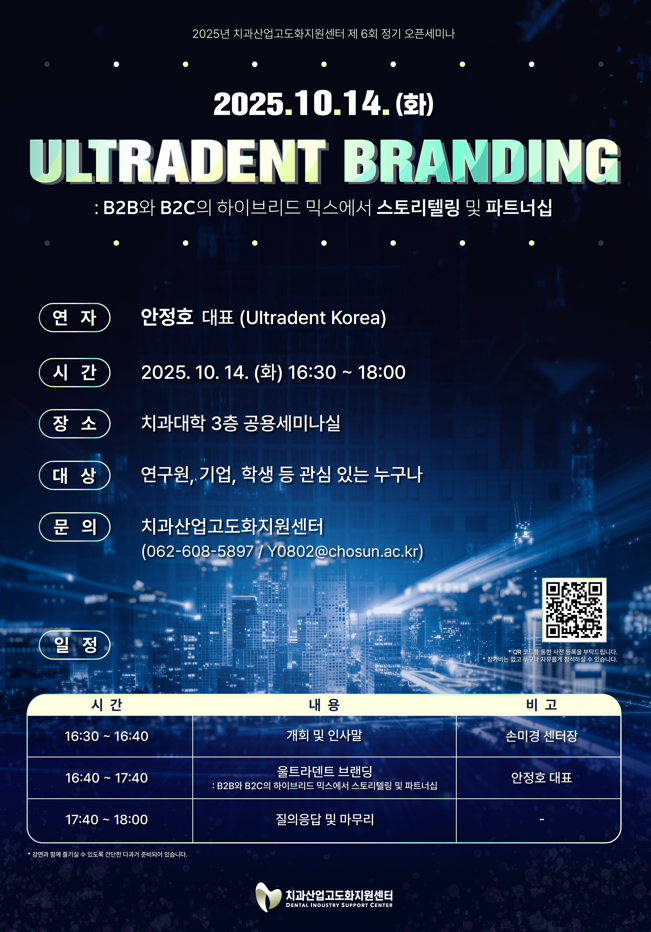 - 주제: “울트라덴트 브랜딩: B2B와 B2C의하이브리드 믹스에서 스토리텔링과 파트너십”