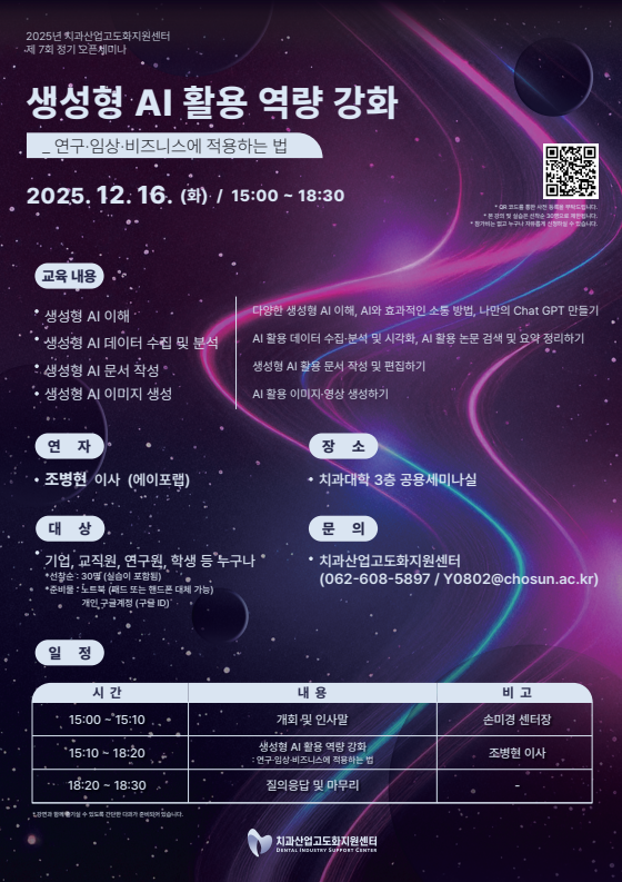 - 주제: “생성형 AI활용역량강화 : 연구·임상·비즈니스에 적용하는 법”
